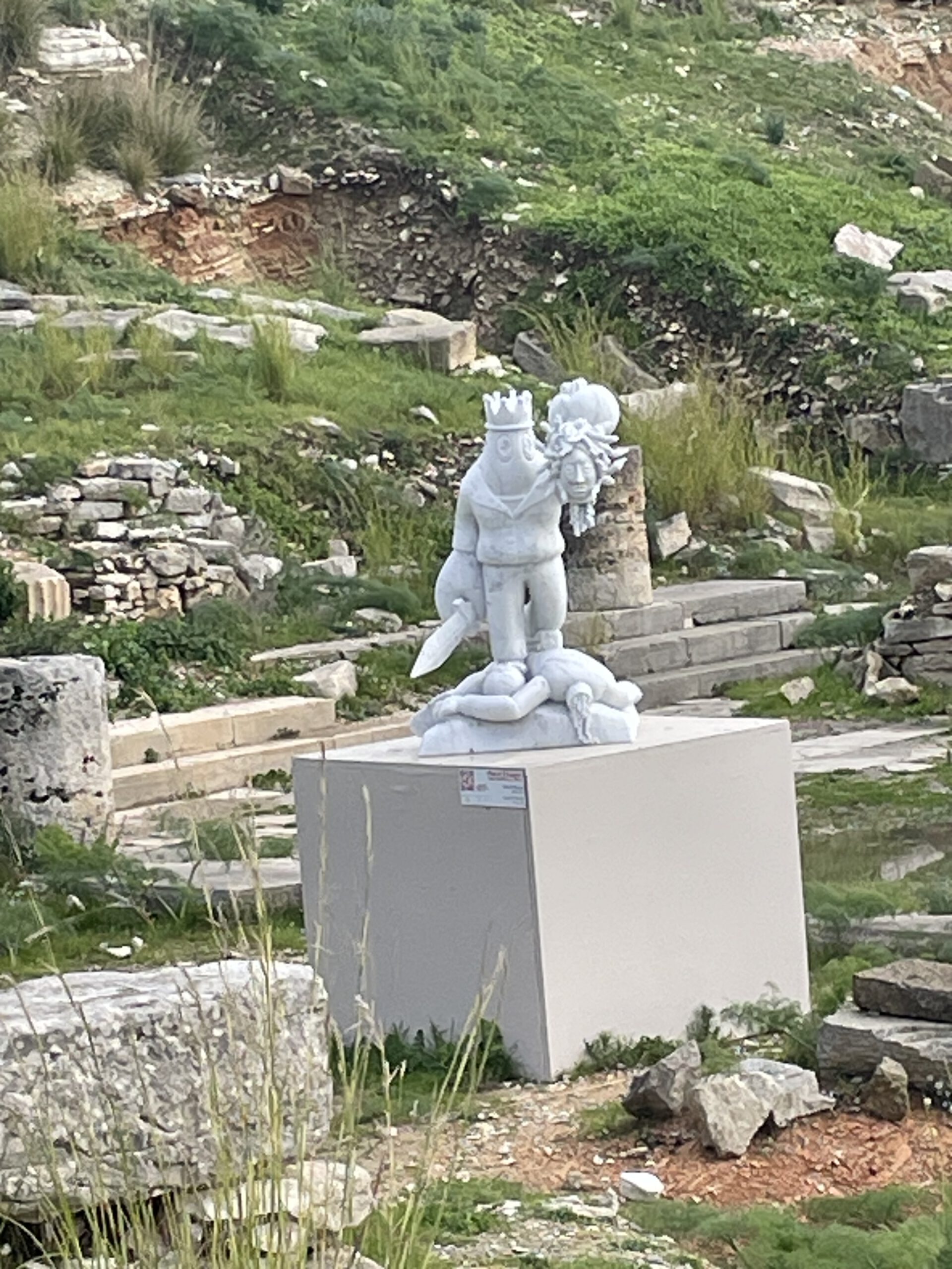 Auf die Spitze des Monte Barbaro erlaube ich mir, mit dem Pullmann zu fahren, hier liegt ein schönes Amphitheater, das im Sommer mit Schauspiel und Konzerten bespielt wird. Rundherum duftet es von Wiesen voller wildem Fenchel, Sellerie, Thymian und Minze……..und ein einsames Ringelblümchen!