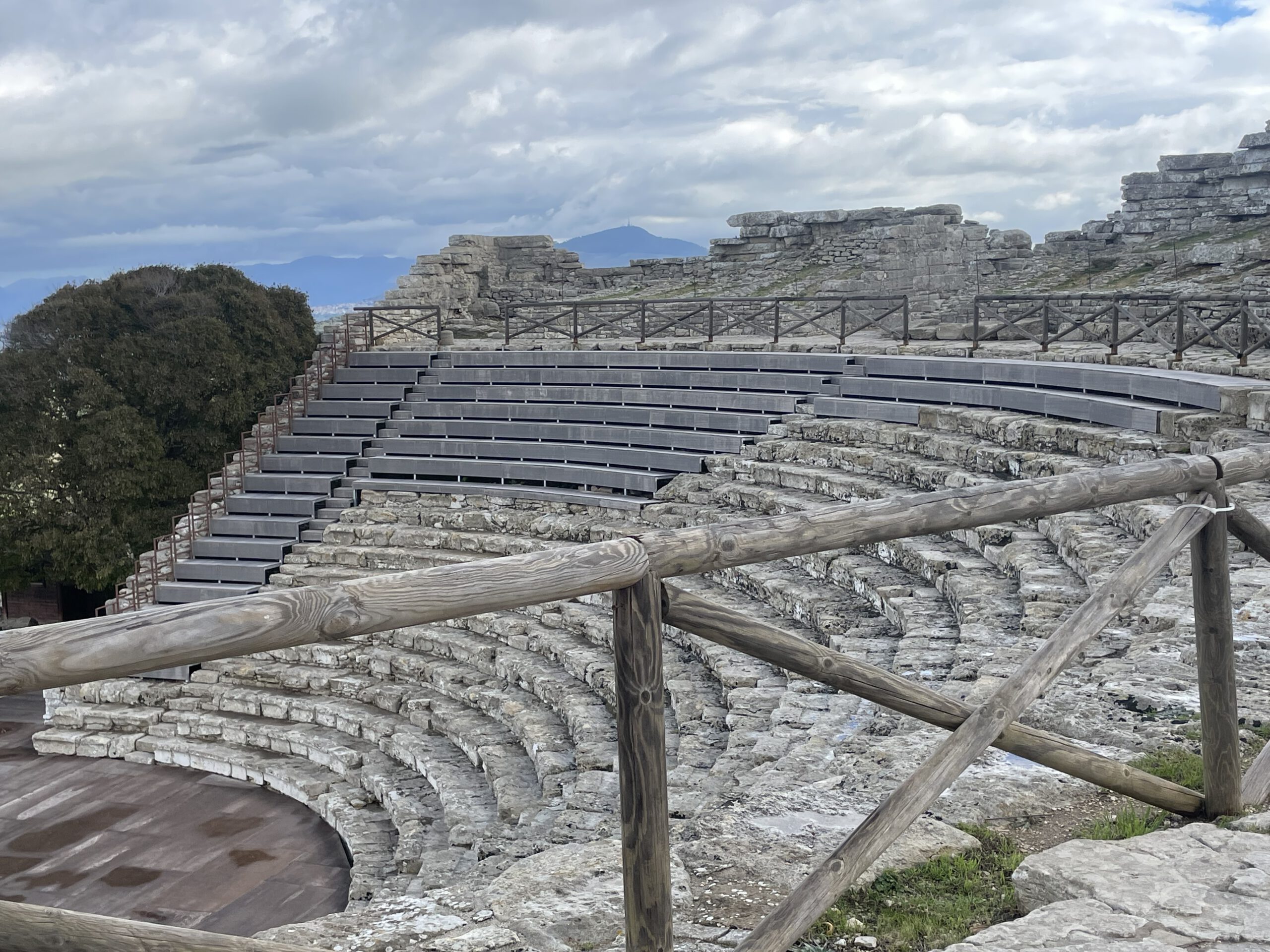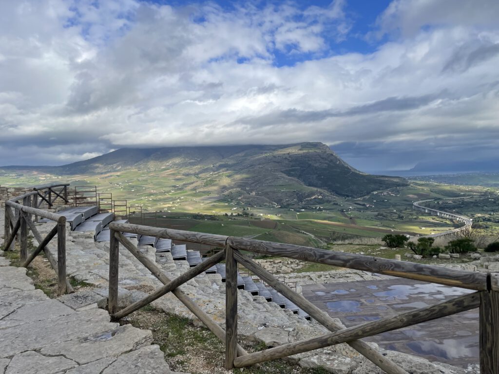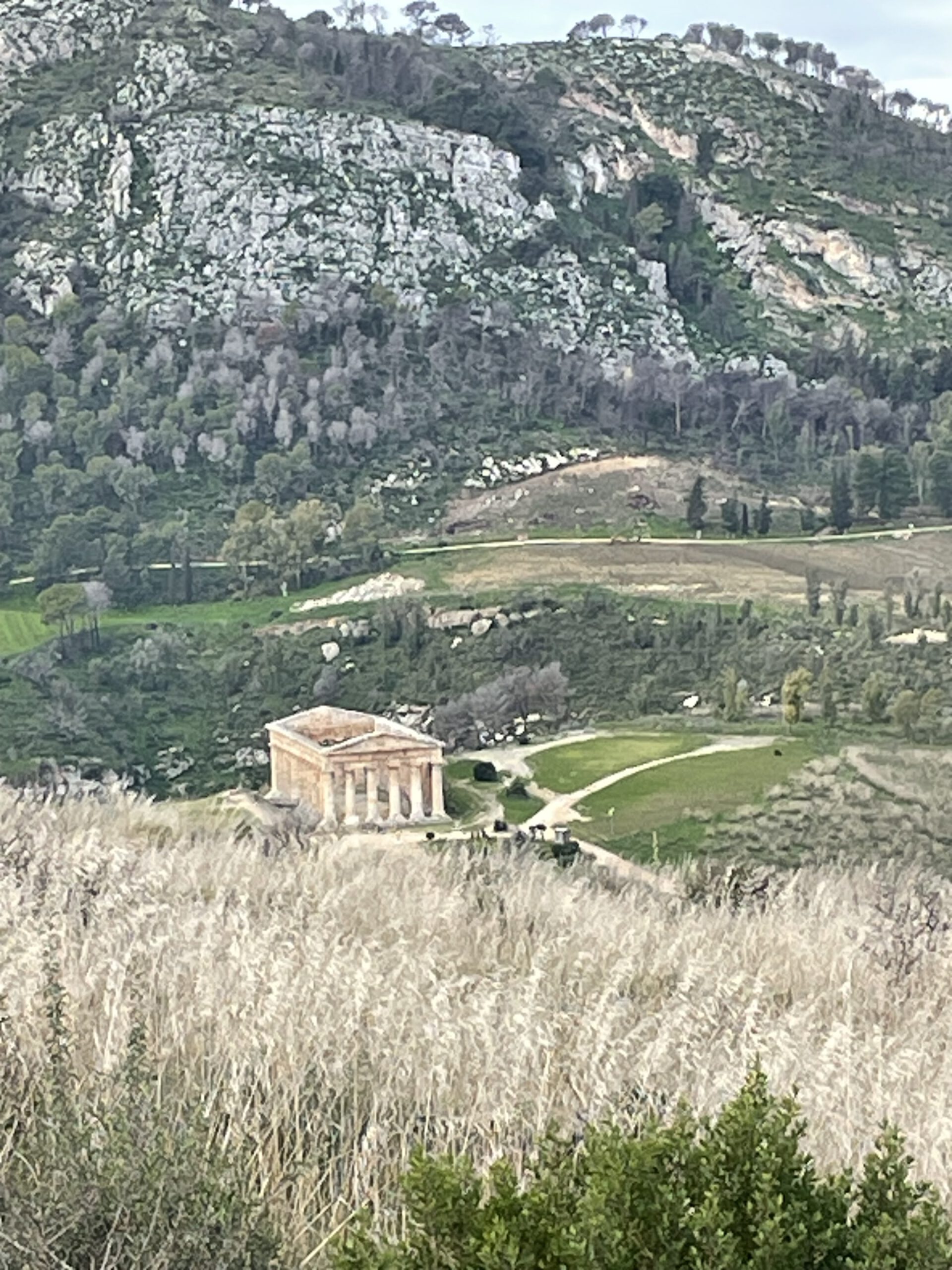 Es ist ein sehr schöner Ort hoch oben in den Bergen – es hat 10 Grad – mit Blick auf die Bucht des berühmtberüchtigten Golfo di Castellammare. Segesta soll die Stadtbegründung der Elymer, ein altes von den Trojanern abstammendes Völkchen sein, das -lange vor der Vernichtung durch die Griechen- das benachbarte Selinunt dem Erdboden gleichmachte. Vermutlich wollten sie den Hafen, denn hier befindet man sich zwar in wunderbarer Umgebung, aber halt hoch in den Bergen bei spürbar raueren Wetterverhältnissen!