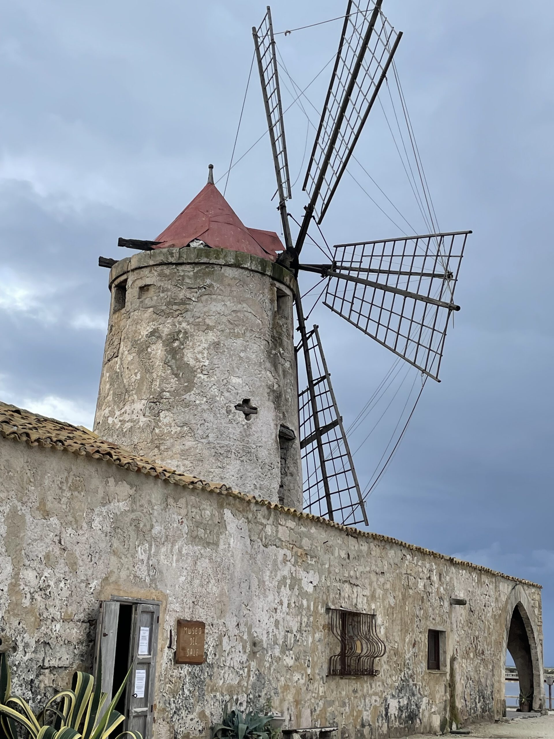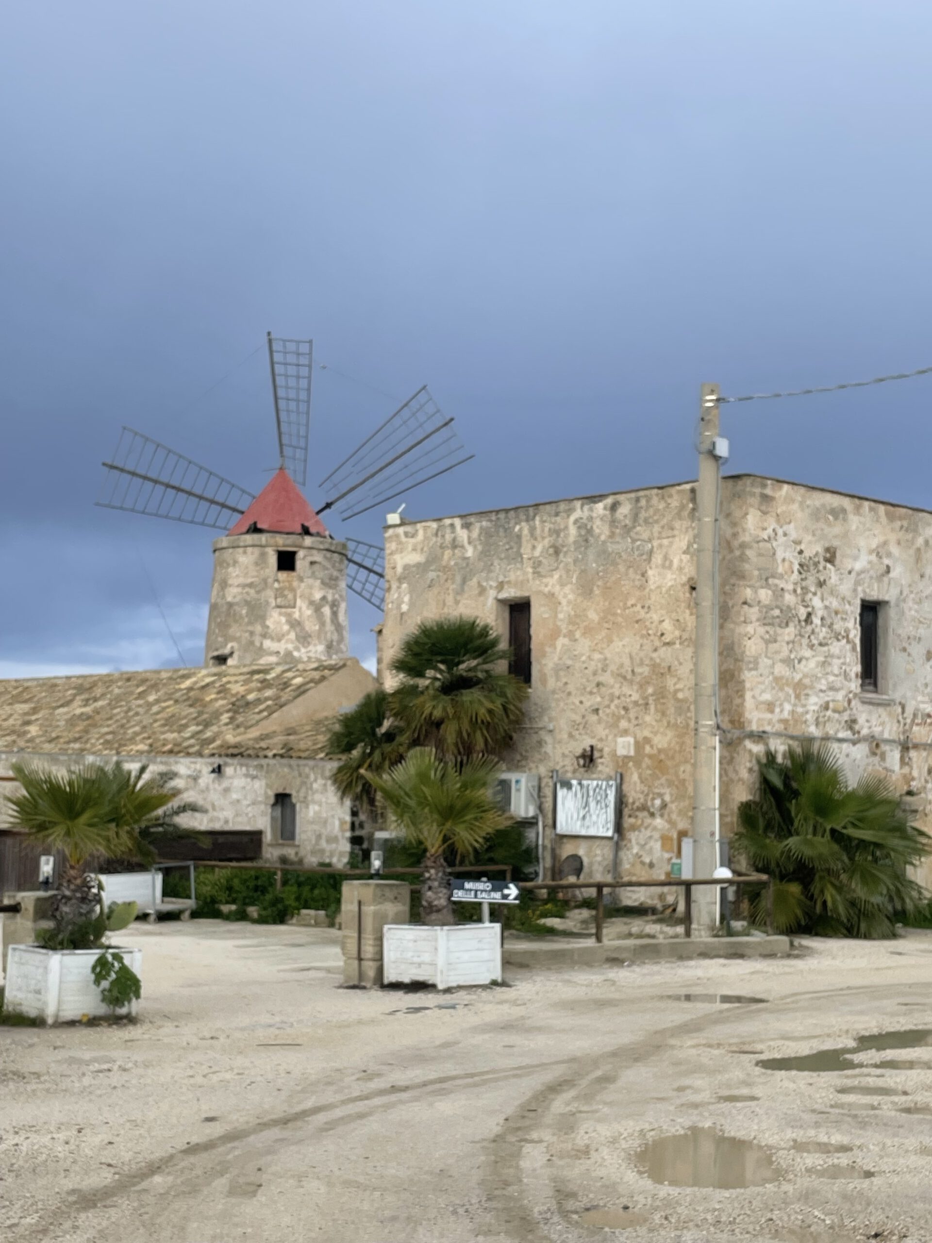 Den heutigen Tag – das Wetter nach wie vor recht durchwachsen – verbringe ich mit der Organisation eines Mietwagens und einen Ausflug in die Salini. Seit dem Mittelalter wird in der Gegend zwischen Trapani und Marsala das„weisse Gold“ gewonnen, dürfte die nächste grosse Mühseligkeit (gewesen) sein, mit der hier die Menschen ihren Lebensunterhalt verdient haben. Ich fahre mit dem Auto zum Salinenmuseum, das allerdings gruselich verrottet vor sich her vegetiert, entsprechend kurz angebunden ist die junge Dame, die das Museum betreut……gibt mit Sicherheit nettere Jobs.