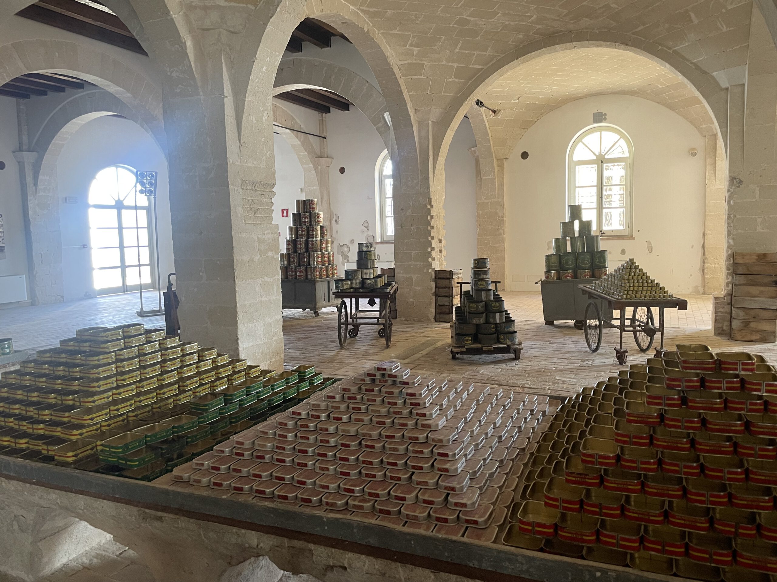 Vincenzo Florio, pfiffiger Begründer aus Palermo nicht nur der Fabrik, sondern auch eines neuen Dampfverfahrens zur Konservierung des Fisches – riesige grüne Bottiche, die mit Holz oder Kohle befeuert wurden zeugen davon – steckte den Fisch danach in Konservendosen, revolutionäre Idee für die damalige Fischindustrie. So sind hier alle Phasen der Produktion zu sehen: Unterstände und Rutschen für die auslaufende Boote, die Terrasse, an der der Fisch zum Trocknen aufgehängt wurde, die hohen Kamine, die Orginaltheken, auf denen in Dosen abgefüllt wurde.